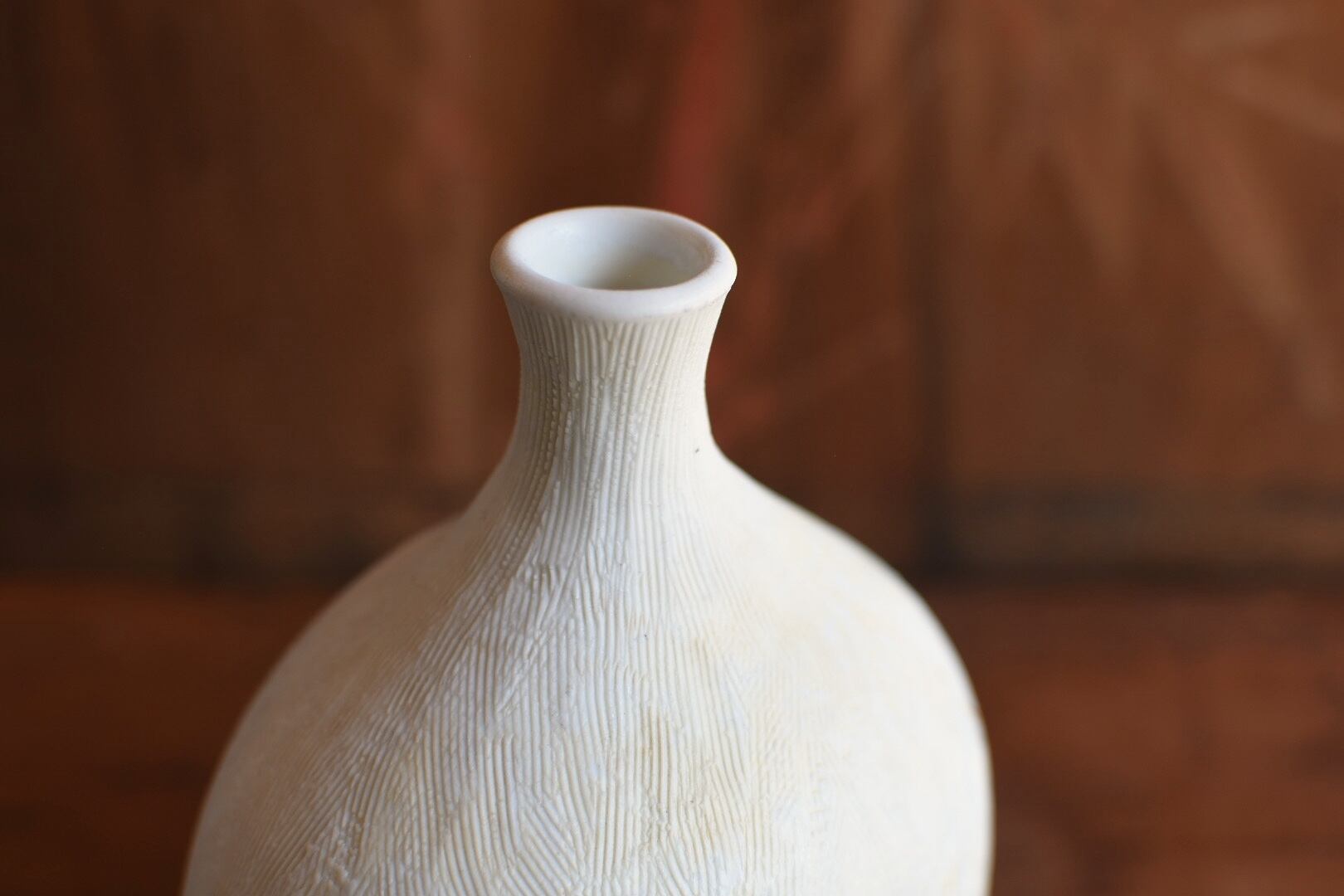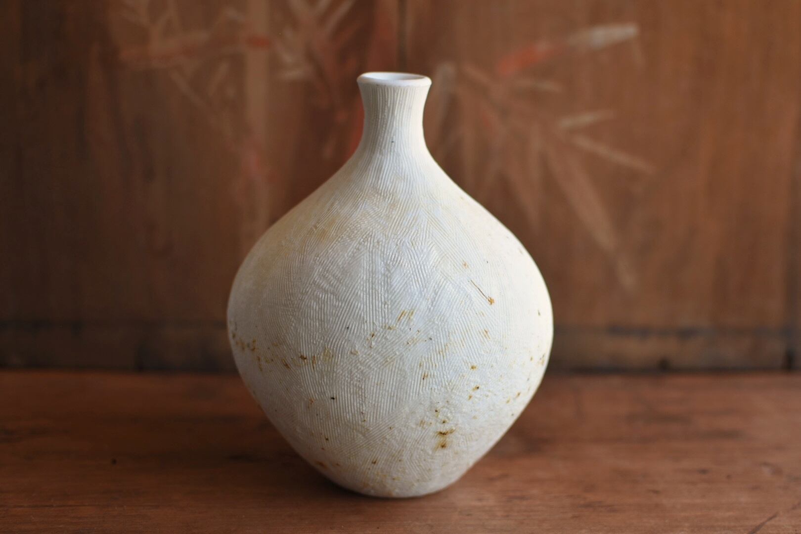 小さく作られた口元は花がとまりやすく、いけばな初心者の方もいけやすい花入です。