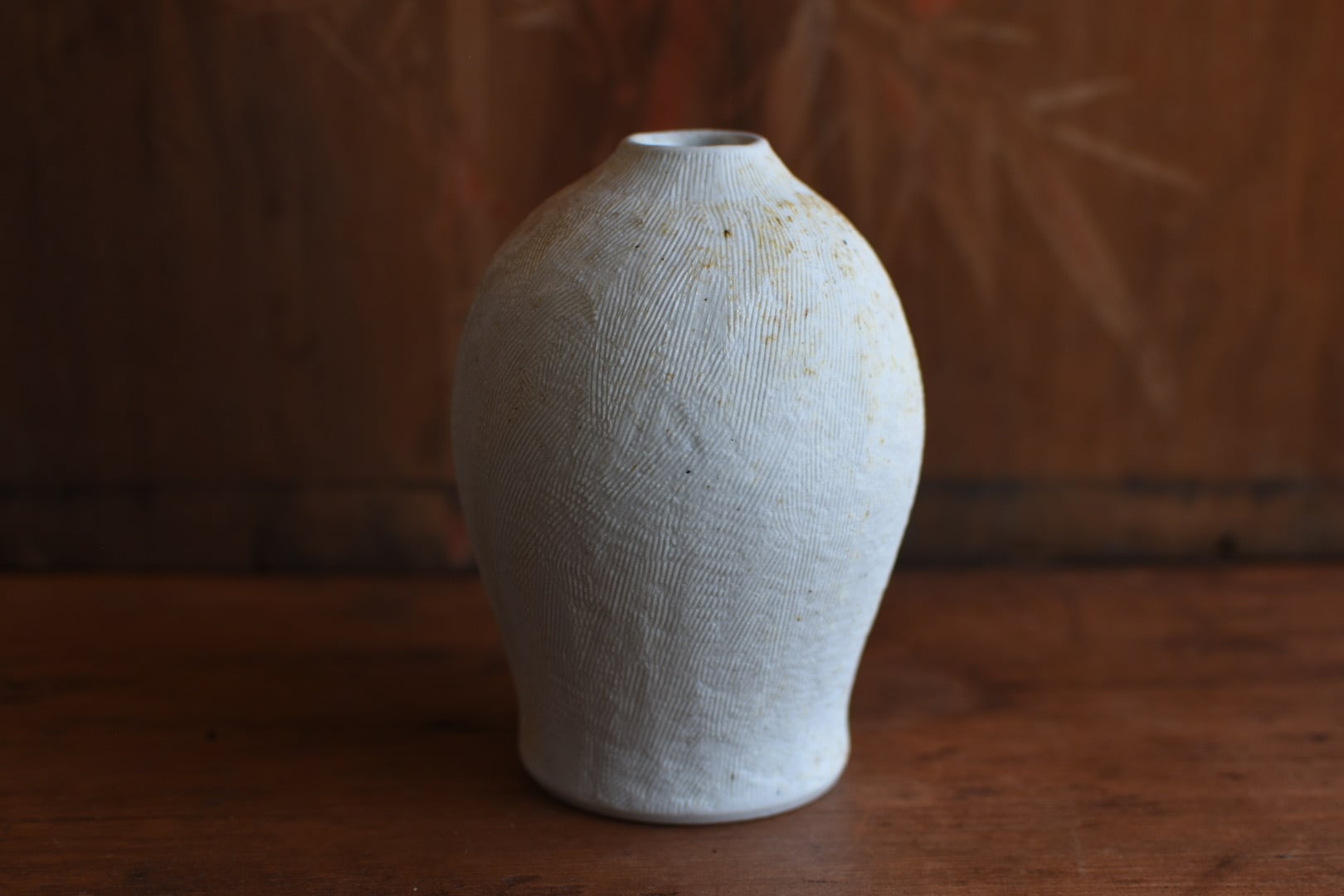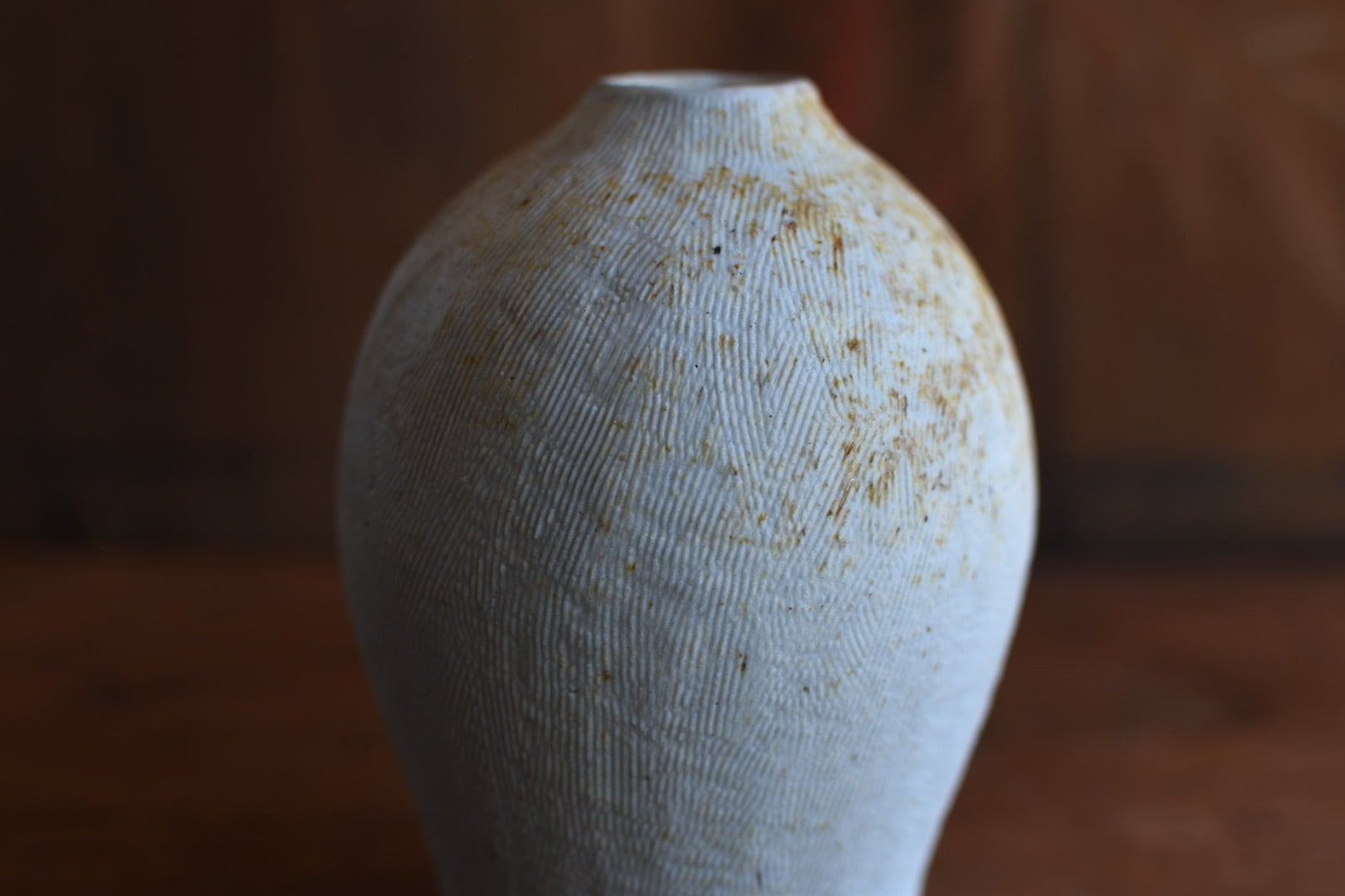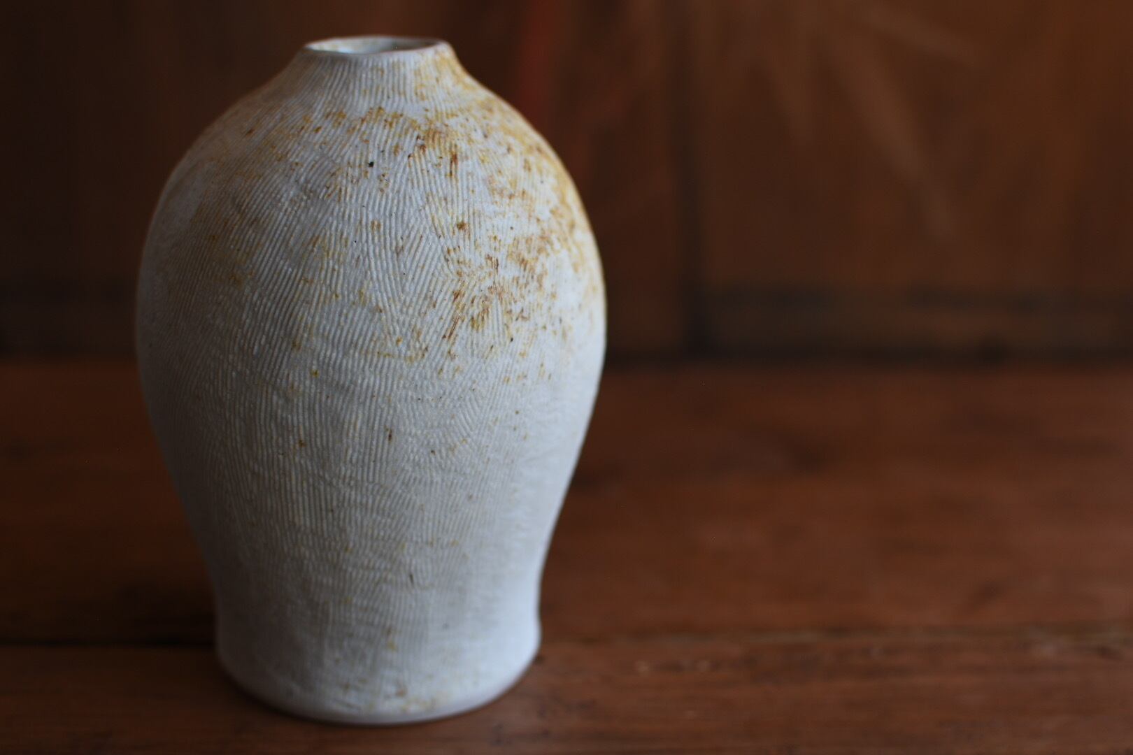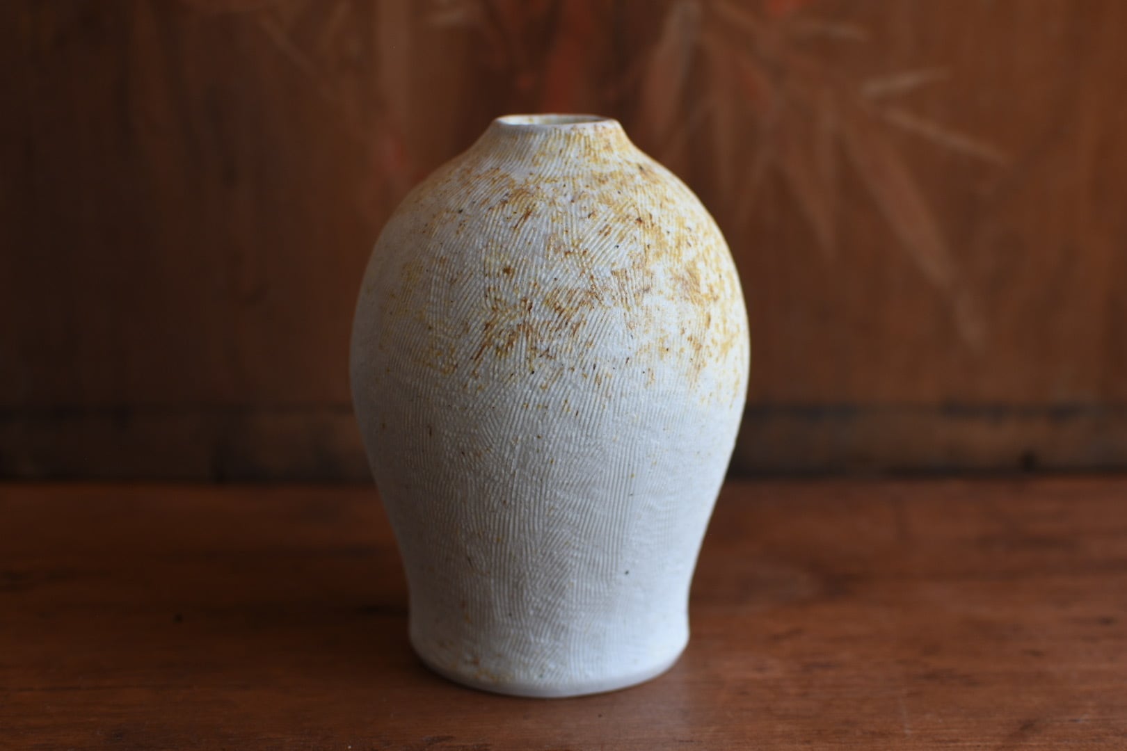 櫛目の柔らかな肌が美しいこの花入は、穴窯の技法によって生まれた表情が魅力の一品です。