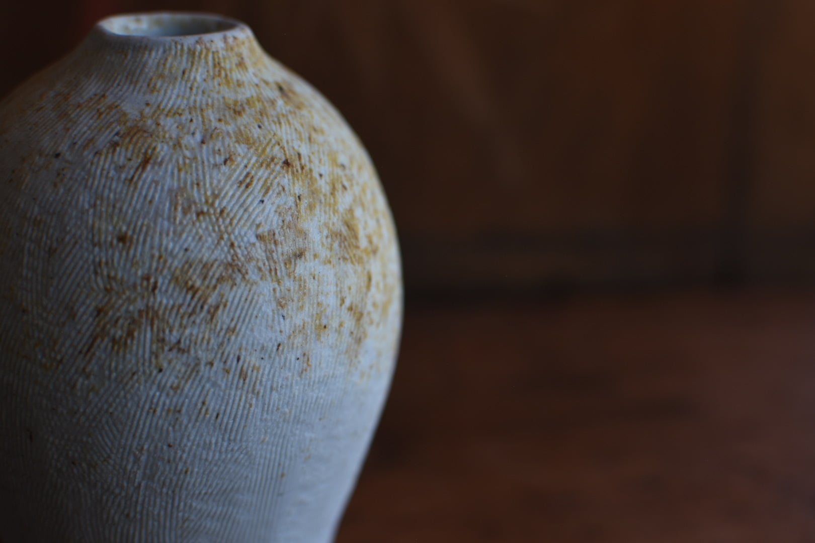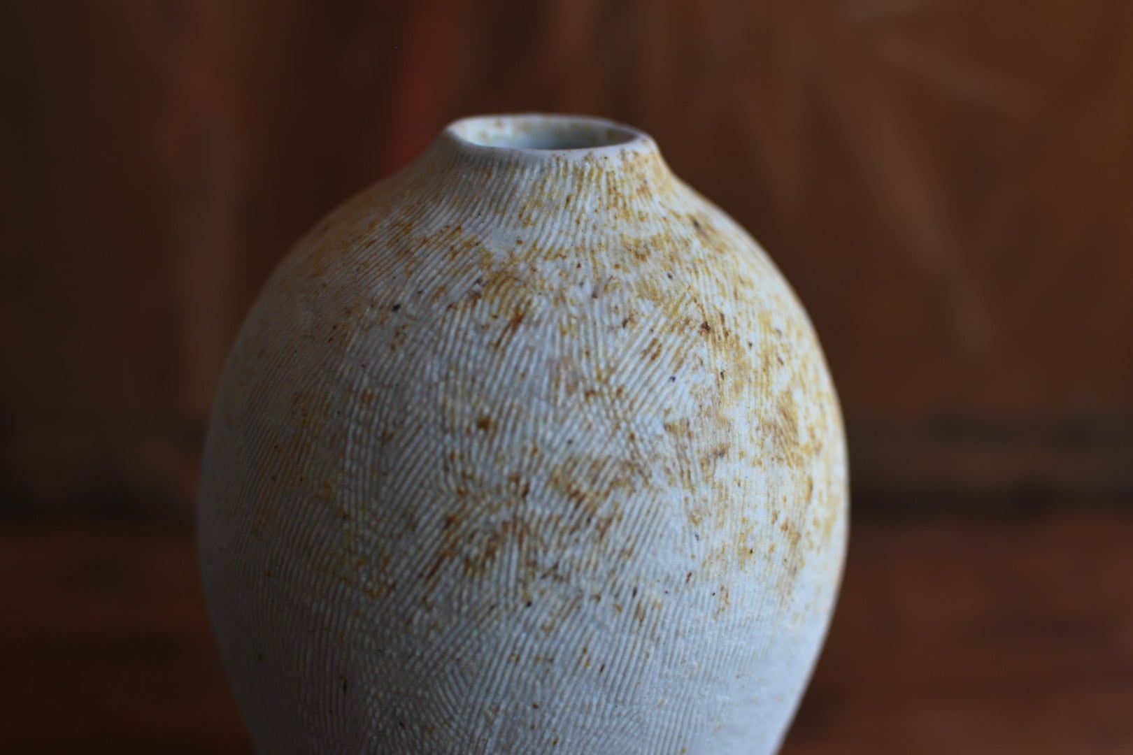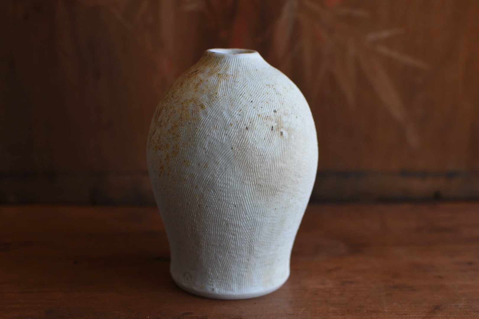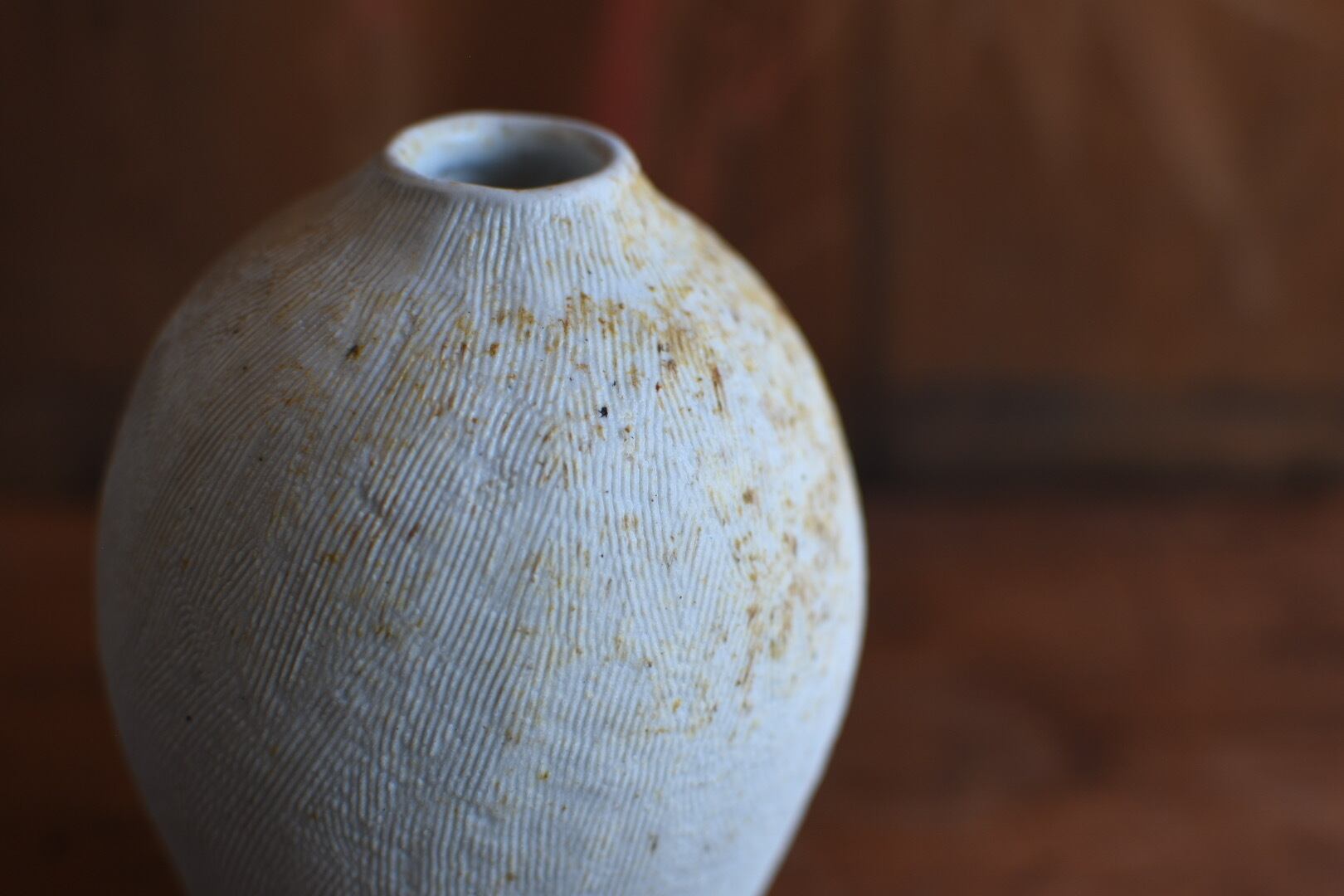 櫛目の柔らかな肌が美しいこの花入は、穴窯の技法によって生まれた表情が魅力の一品です。