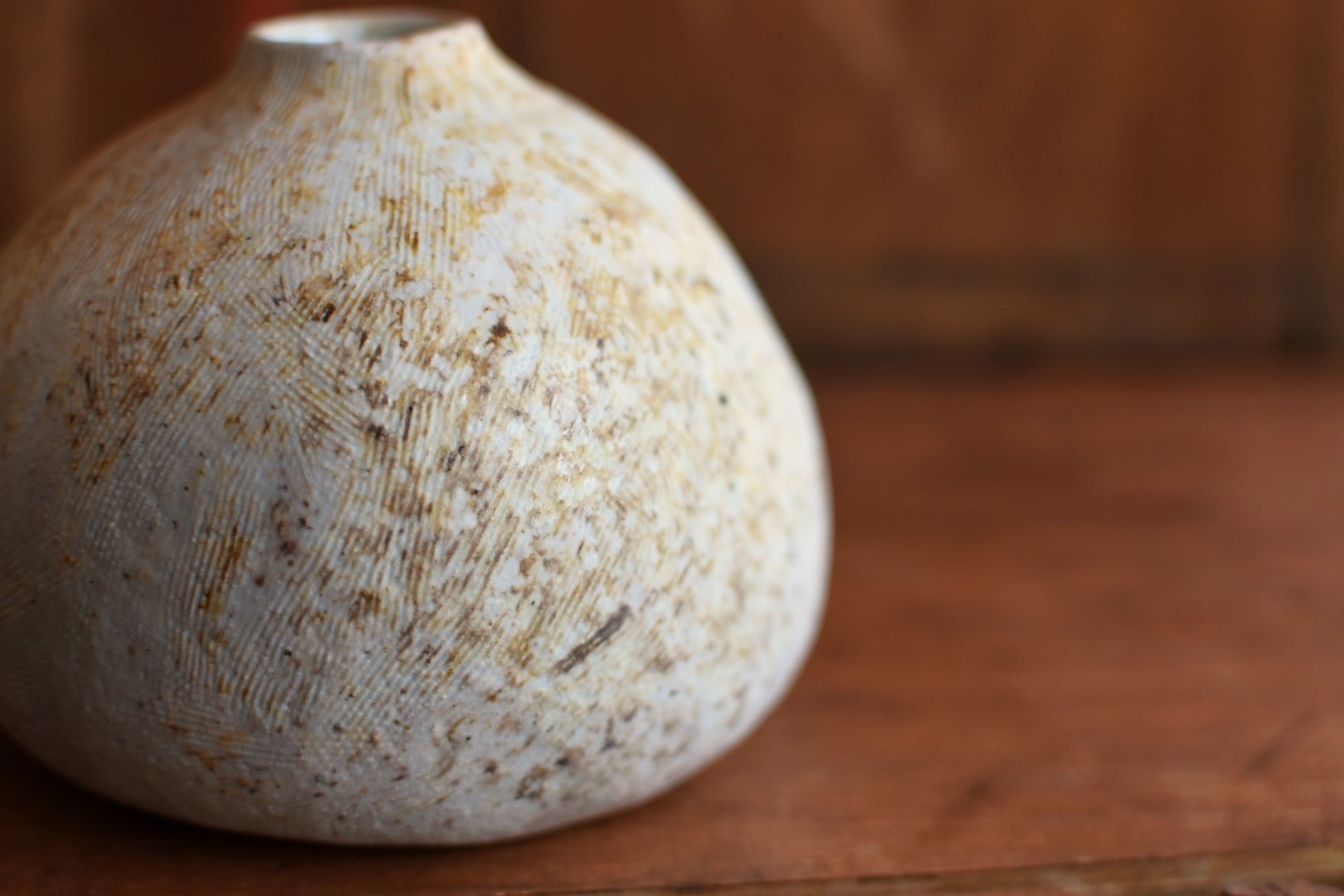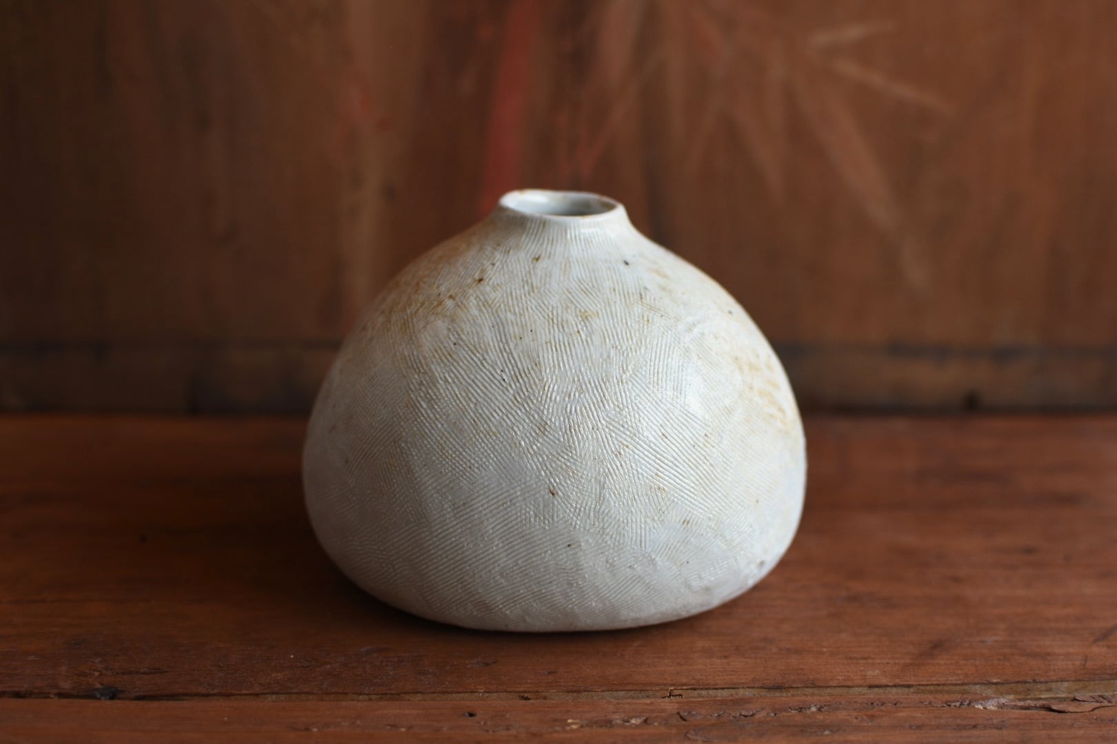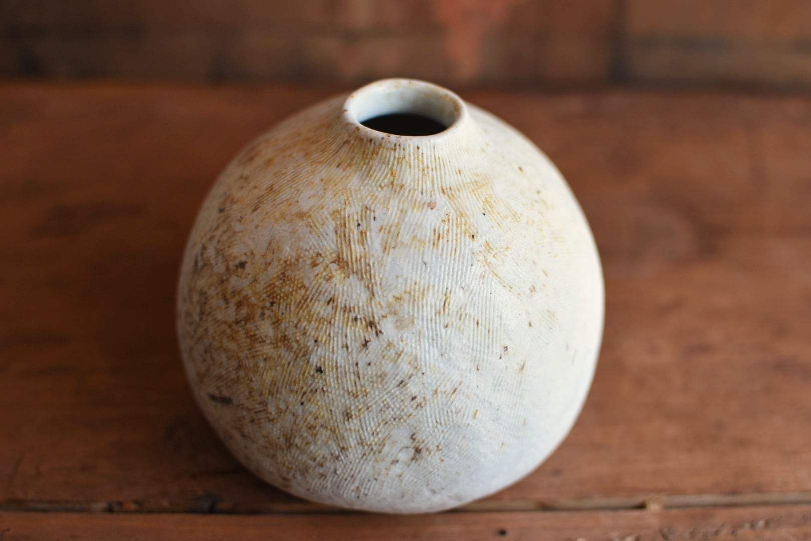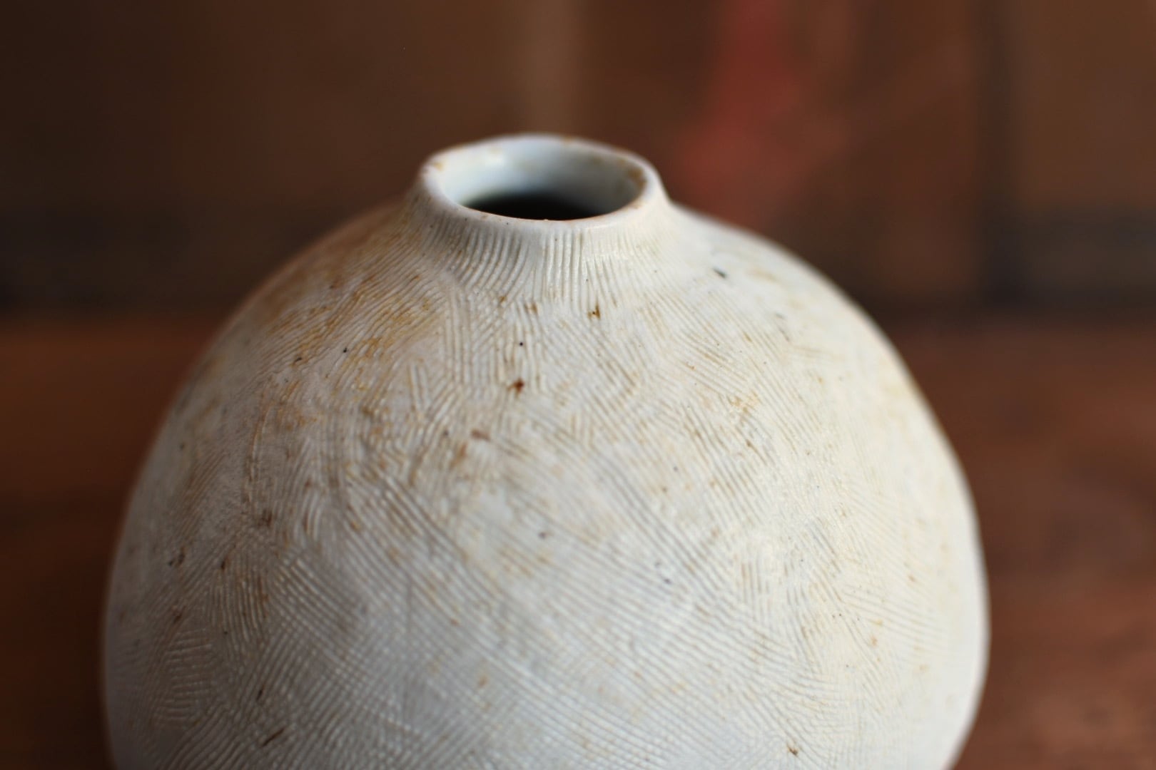 繊細な櫛目模様が施されたこの作品は、穴窯の技法によって生まれた独特の表情が魅力的です。