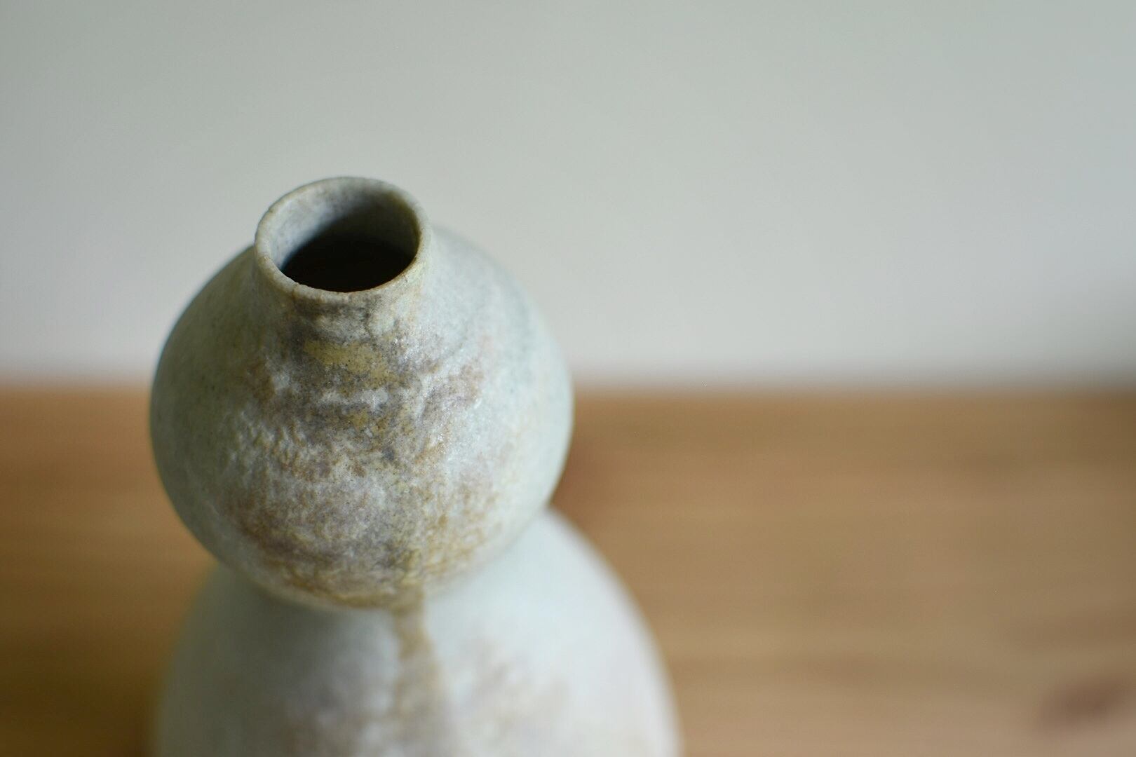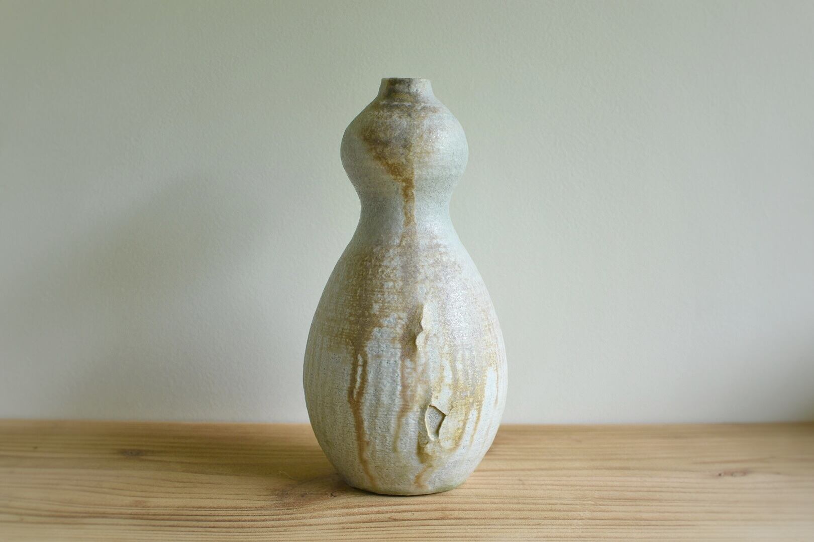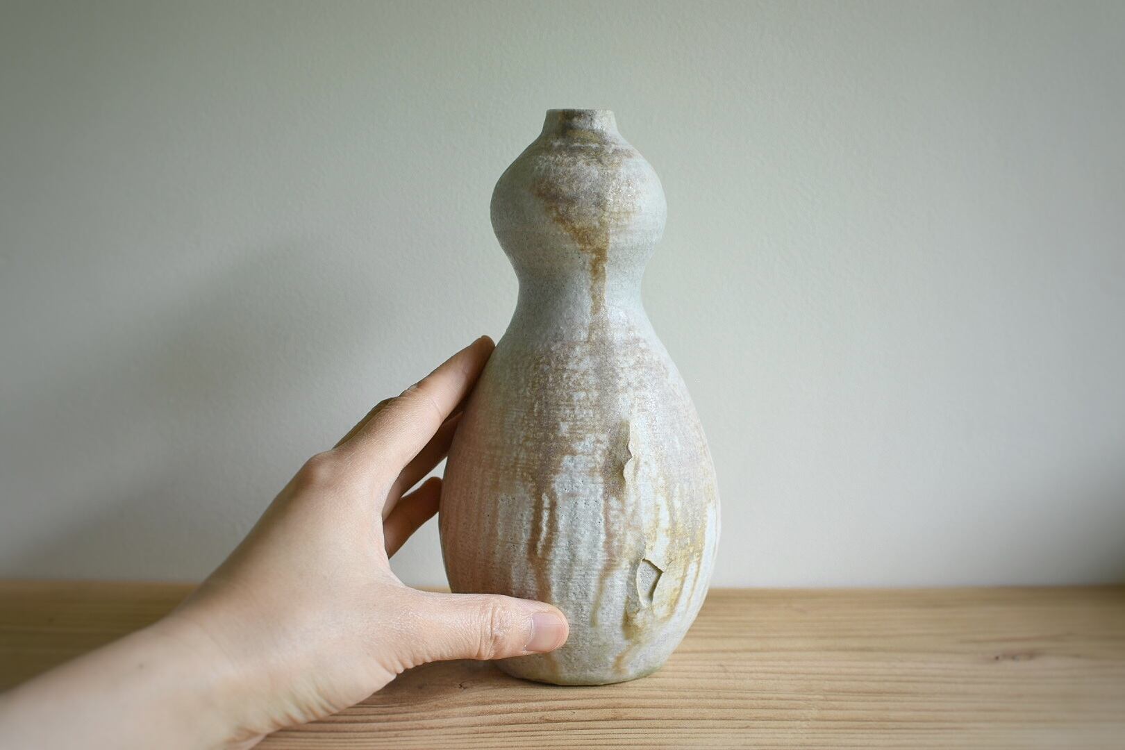 器を流れる自然釉と、しなやかなくびれが美しい瓢花入です。