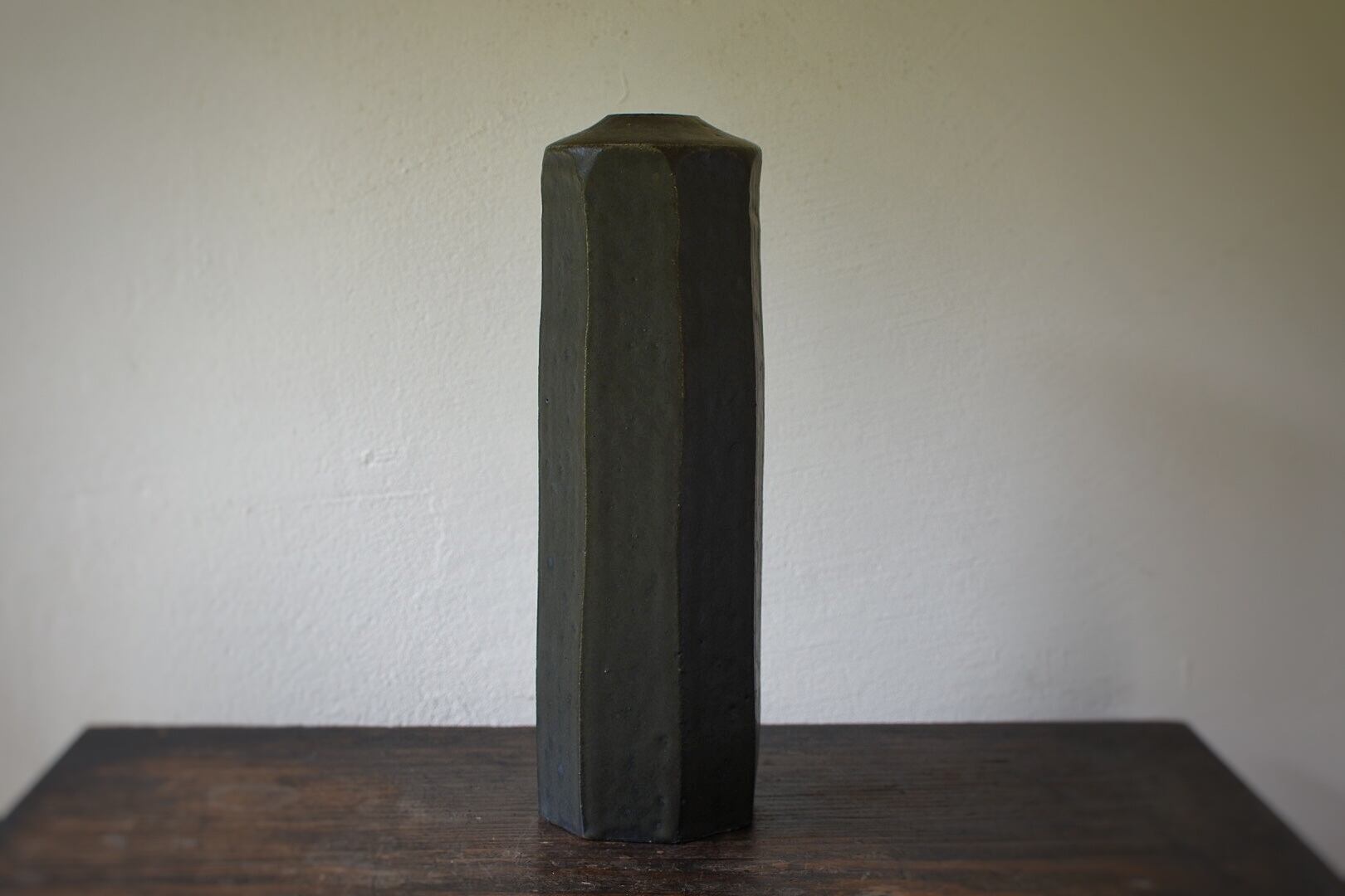 背の高い、マットな質感の面取花入です。