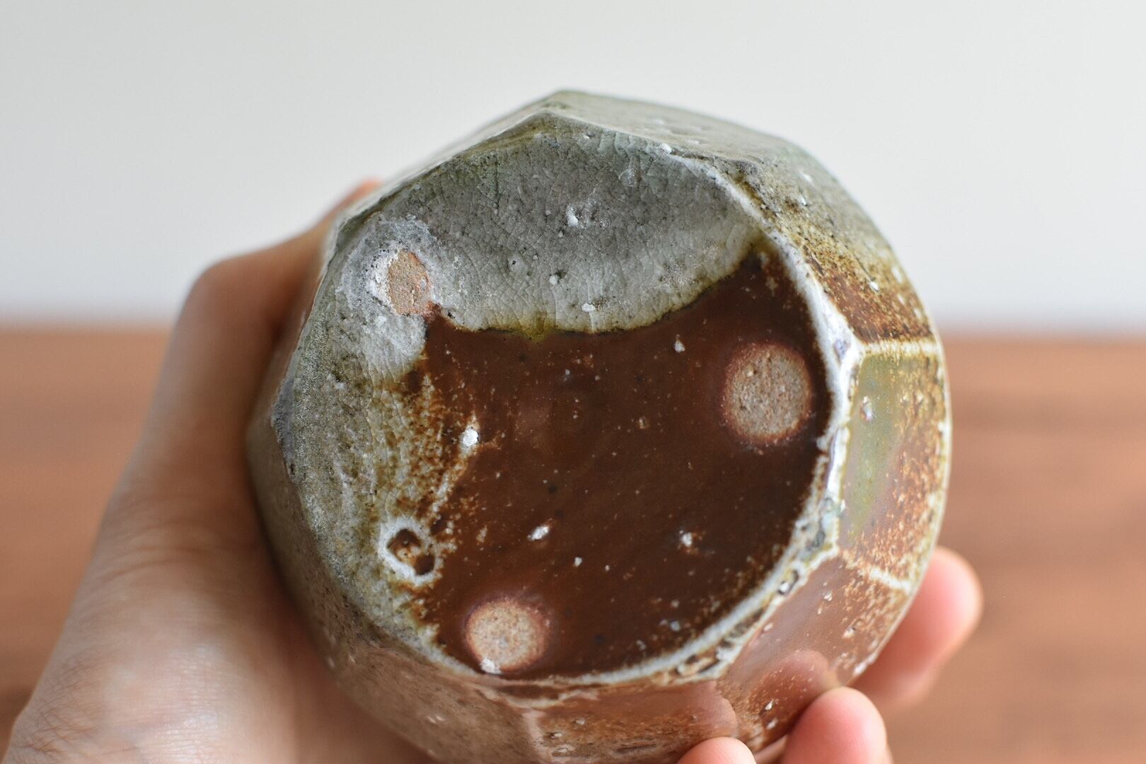信楽系の土を主に使用しており、焼き味をみて唐津、備前、丹波、萩、国東半島の土をブレンドします。