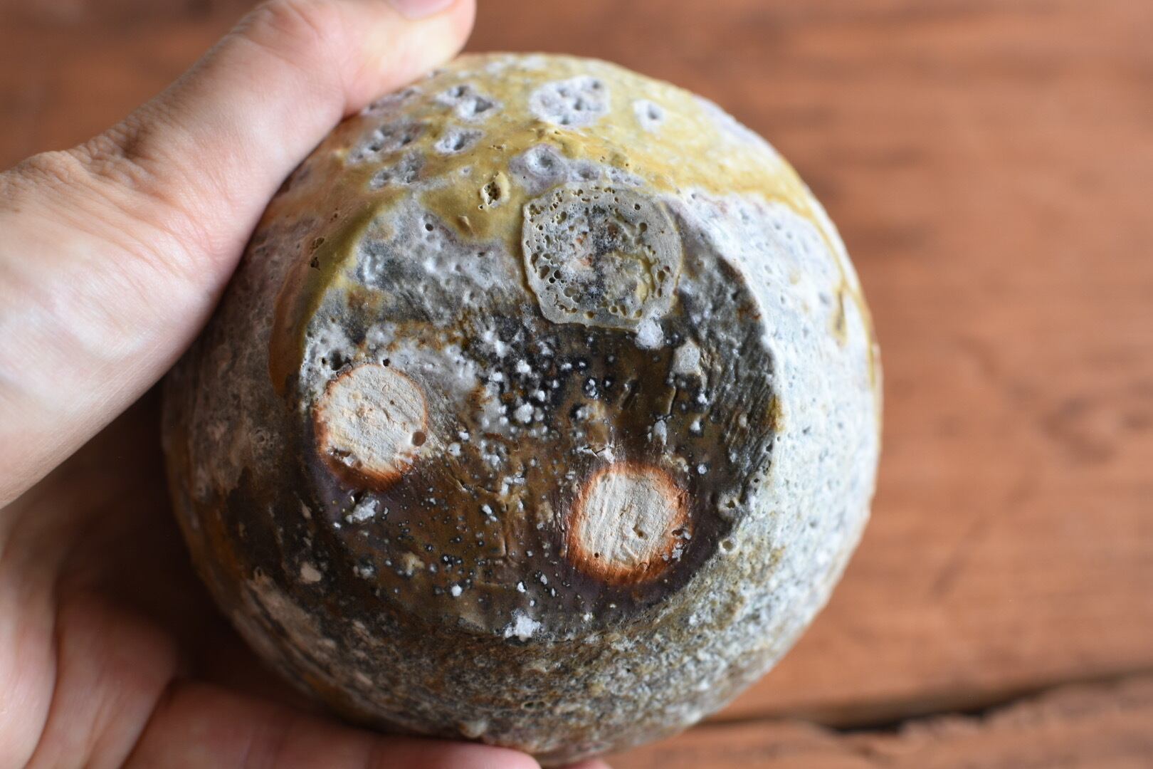 黄色味を帯びた自然釉薬の美しさが目を惹きます。